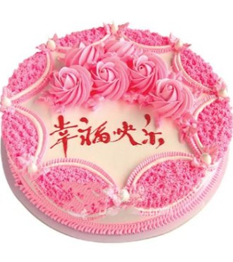 • 三層圓形蛋糕,由奶油,水果,鮮各色玫瑰等材料組成,絕對新鮮.美味可口.